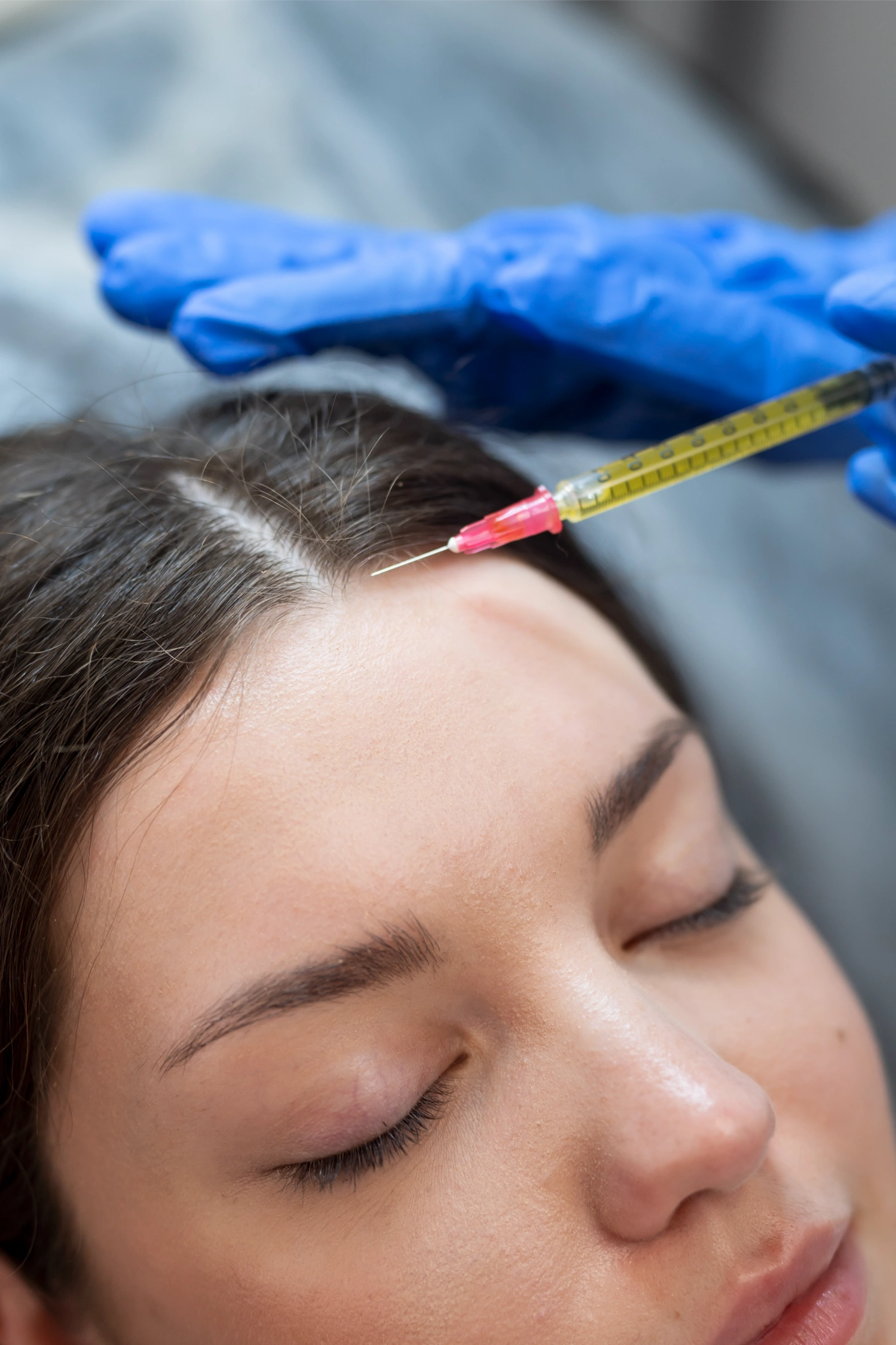 During the treatment, a small amount of blood is drawn and processed to extract platelet-rich plasma. The PRP is then injected into targeted areas of the scalp using ultra-fine needles or a precise microdroplet technique. The procedure typically takes about 45–60 minutes and involves minimal discomfort with little to no downtime. Over a series of sessions, the treatment gradually stimulates hair follicles, improves scalp circulation, and enhances hair density.